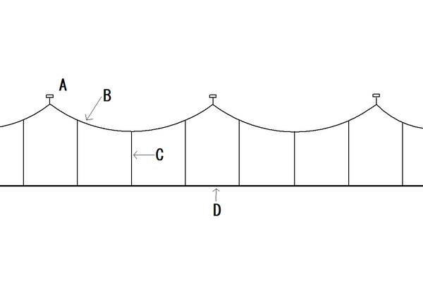 - Поперечно-цепная контактная подвеска — контактный провод между опорами контактной сети висит не свободно, а на часто расположенных проволоках, называемых струнами, которые прикреплены другим концом к несущему тросу.