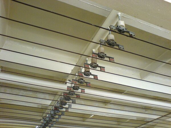 - Регулировка натяжения провода с целью уменьшения стрелы провисания. Регулировка может осуществляться как вручную, два раза в год, так и автоматически, с помощью противовесов. Некоторые разновидности подвесок, например, маятниковая, не требуют специальных приспособлений для регулировки натяжения.