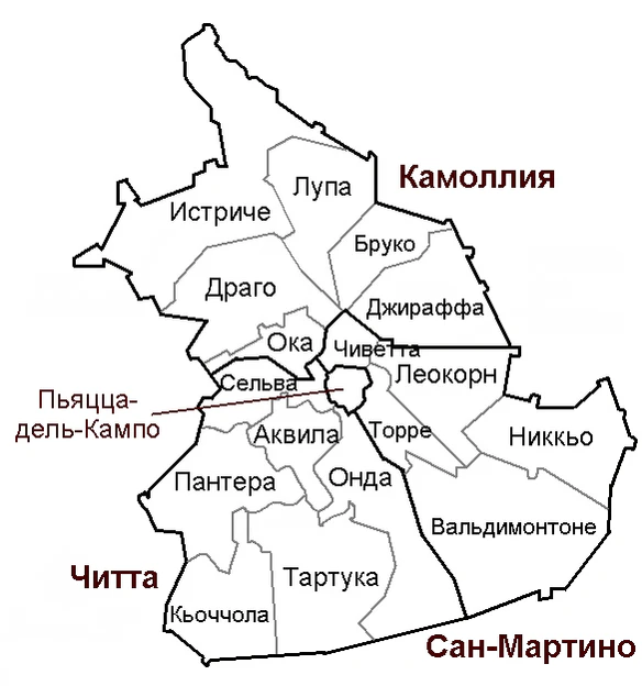 Изначально было 59 контрад, но со временем их число сократилось до 17.