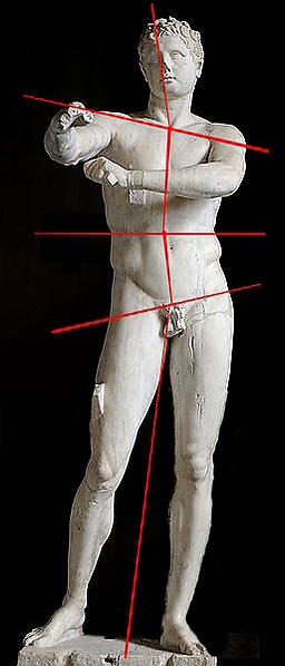 Контрапост позволяет передать напряжение стоящей фигуры, не нарушая общего равновесия форм[5]. Контрапост — это достижение равновесия (пондерации), создаваемого противоположно направленными движениями.