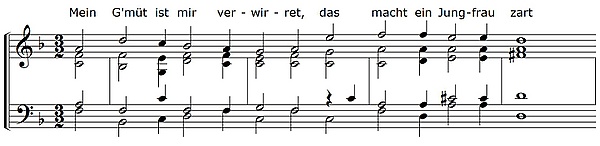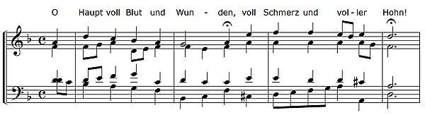 С 20-х годов XVI века, в ходе формирования протестантского хорала (прежде всего, в Германии, позже также в других странах) контрафактура приобрела массовый характер. Сакрализация лирических и даже фривольных песен носила осознанный и намеренный характер. Песня «Venus, du und dein Kind» («Венера, ты и твоё дитя») Якоба Регнарта (ок.1540—1599)[4] стала хоралом «Auf meinen lieben Gott» («На моего любимого Бога [уповаю в нужде]»), «Mein Gmüth ist mir verwirret, das macht ein Jungfrau zart» («Я весь в смятеньи, тому причиной нежная девица») Г. Л. Хаслера — хоралом «O Haupt voll Blut und Wunden» («Окровавленная и израненная глава» [Спасителя]; см. нотный пример), «A lieta vita» («К весёлой жизни» [нас зовёт любовь]) Дж. Гастольди — «In dir ist Freude» («В Тебе моя радость»). Песня Г. Изака «Innsbruck, ich muss dich lassen» («Инсбрук, я должен тебя покинуть»), в основу которой лёг популярный фольклорный прототип, обрела драматическое звучание в хорале «O Welt, ich muss dich lassen» («О мир, я должен тебя покинуть»). Французская народная песня XVI века «Une jeune fillette» («Молодая девушка») легла в основу хоралов на Адвент «Von Gott will ich nicht lassen» («Я не расстанусь с Богом») и «Mit Ernst, o Menschenkinder» (последний используется и по сей день)[5]. Примеров подобной повышающей контрафактуры в XVI—XVII в. обнаруживается большое количество[6]. Обычным делом в протестантском хорале оставалась и контрафактура григорианских распевов[7].