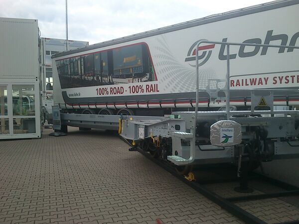В 2003 году компанией Modalohr (Франция) был создан вагон со специальными поворотными низкопольными карманами, позволяющий осуществлять погрузку и разгрузку c помощью автотягачей на площадке терминала или непосредственно на автодороге[1].