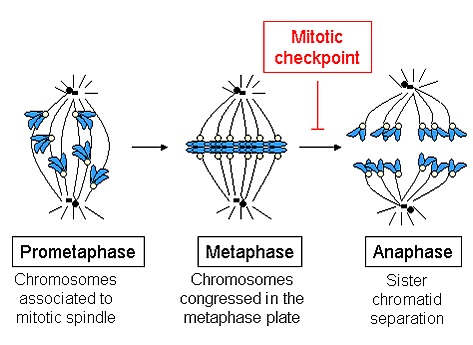 При переходе от метафазы к анафазе эта связь между сестринскими хроматидами разрушается, и разделенные хроматиды вытягиваются к противоположным сторонам клетки с помощью микротрубочек веретена. Хроматиды далее разделяются физическим движением самих полюсов веретена. Преждевременная диссоциация хроматид может привести к неправильной сегрегации хромосом и анеуплоидии в дочерних клетках. Таким образом, задача контрольной точки веретена состоит в том, чтобы предотвратить этот переход в анафазу до тех пор, пока хромосомы не будут должным образом прикреплены, прежде чем сестринские хроматиды разделятся.