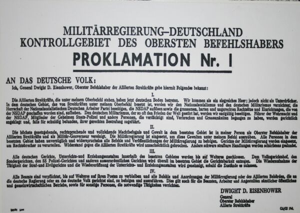 Единый подход к послевоенному будущему Германии вырабатывался на встречах стран антигитлеровской коалиции начиная с Тегерана. На встрече в Касабланке в 1943 году было заявлено, что союзники будут вести войну против Германии до её безоговорочной капитуляции, а Ялтинская декларация содержала положения о разделении Германии на оккупационные зоны, координированной администрации и контроле, осуществляемом через Центральную контрольную комиссию. После безоговорочной капитуляции Германии 8 мая 1945 года 23 мая в Мюрвике было арестовано имперское правительство в главе с Карлом Дёницем и Иоганном Людвигом Шверин фон Крозигом.