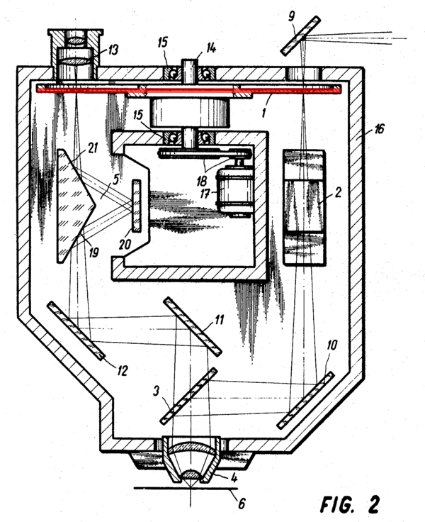 В 1940 году Ганс Гольдманн, офтальмолог из Берна, Швейцария, разработал систему щелевых ламп для документирования глазных обследований[2]. Эта система рассматривается некоторыми более поздними авторами в качестве первой конфокальной оптической системы.[3][4]