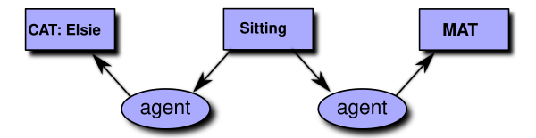 [Cat Elsie] [Sitting *x] [Mat *y] (agent ?x Elsie) (location ?x ?y)