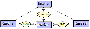 Это описание утверждает, что для любых x и y существует z, являющееся их разностью. В форме КГ факт изображается следующим образом: