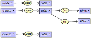 На иллюстрации проектируются графы «человек идёт» и «мальчик идёт утром в школу»; их общий подграф выражает «мальчик идёт».
