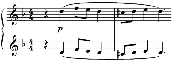 - Finale: Alla breve (ре минор — ре-мажор). В финальном рондо Рахманинов переосмысливает и трансформирует некоторые музыкальные образы первой части. Кода финала, которой удивительным образом удаётся одновременно быть и величаво-торжественной, и стремительно-динамичной, разрешается у солиста на фоне громового оркестрового tutti мощным водопадом триолей нисходящих октав[1], оставляющим у слушателей поистине сокрушительное впечатление.
