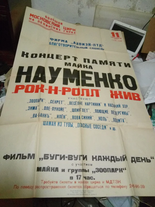 Сразу после известия о смерти Майка Науменко музыкант группы "Зима" И. Шапошников предлагает продюсеру группы "Оле Лукойе" (Москва) сделать проект состоящий из разных версий песен Майка Науменко в исполнении других групп[2]. Для привлечения внимания к этому проекту нашедшем в дальнейшем физическое воплощение в виде пластинки памяти Майка Науменко изданную лейблом "Acid Art Pictures" на фирме "Мелодия". При организации концерта большую организационную помощь оказала Света Ельчанинова (основатель клуба им. Джерри Рубина).