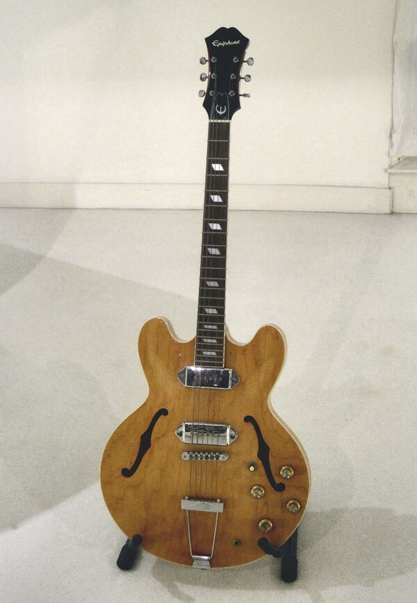 «Телекастер», на котором Харрисон играл во время концерта на крыше, был изготовлен специально для него мастерами Роджером Россмейслом и Филиппом Кубицки в качестве подарка от фирмы Fender. Компания запускала новую линейку гитар из розового дерева, и презентация прототипа для битла была хорошей рекламой. После нескольких часов работы гитара была доставлена в штаб-квартиру Apple. Россмейсл и Кубицки не знали, что стало с гитарой больше года, пока не купили билеты на фильм «Пусть будет так» и не увидели инструмент их производства на большом экране[14].