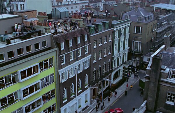В самый последний момент группа решила устроить выступление прямо на крыше офиса своей компании Apple Corps, находящийся на тот момент на улице Сэвил-Роу — в первую очередь известной своими мастерскими индивидуального пошива английских костюмов. К тому же богатую историю имеет и само здание Apple — после победы над Наполеоном здесь поселился герцог Веллингтон, а в 1849 году английские шляпники братья Уильям и Томас Боулеры изобрели здесь знаменитую «шляпу-котелок»[21]. По словам Линдси-Хогга, The Beatles до последней минуты не могли определиться насчёт проведения концерта. Он вспоминал, что они обсуждали это, а затем замолчали, пока «Джон не сказал в тишине: „К чёрту —давайте сделаем это“»[22].