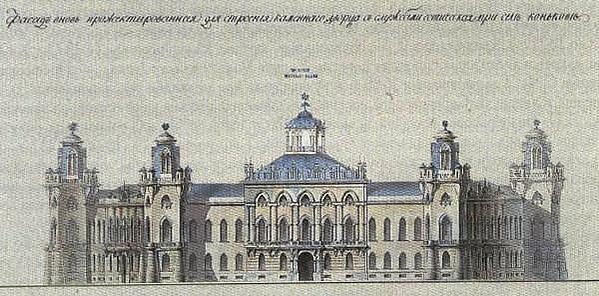 Известно несколько проектов дворца, разработанных для села Коньково. Большинство их выполнено в манере, типичной для архитектора Матвея Федоровича Казакова (1737—1812), строившего и в Царицыне. Однако существует вариант здания, принадлежавший руке Василия Ивановича Баженова (1733—1799). Его план представляет собой двухсторонний разворот больших полуокружностей переднего и заднего фасадов, а также двух малых полуокружностей на торцах. Аналогичную идею содержал первоначальный проект Казанского собора в Петербурге, как известно, реализованный лишь частично. Сохранилось письмо архитектора, где он пишет о чертежах: «и на Коньково готовлю».