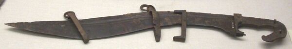 Для нанесения вреда противнику мы более предпочитаем кривую саблю (μάχαιραν), чем прямой меч (ξίφος), потому что для всадника с высокого места удар саблею (κοπίς) удобнее, чем удар мечом.[3]