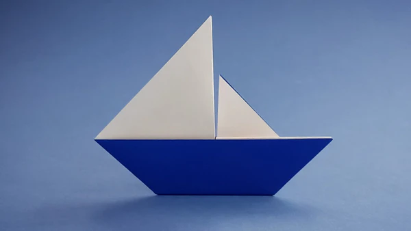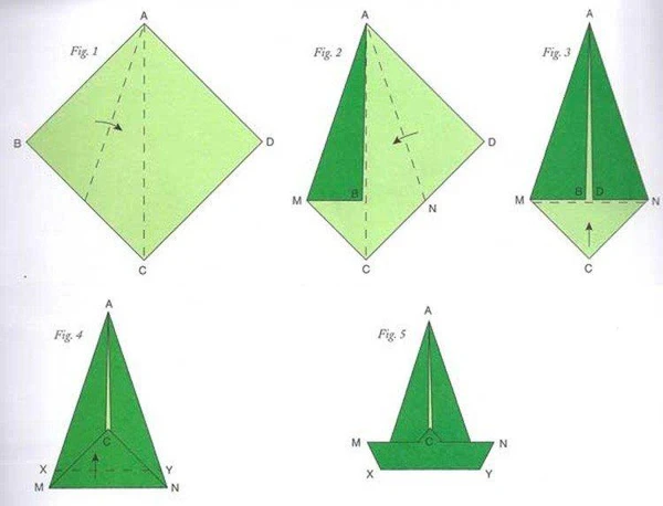 - По нижнему краю боковых сторон загнуть нижний треугольник (основание корабля);
