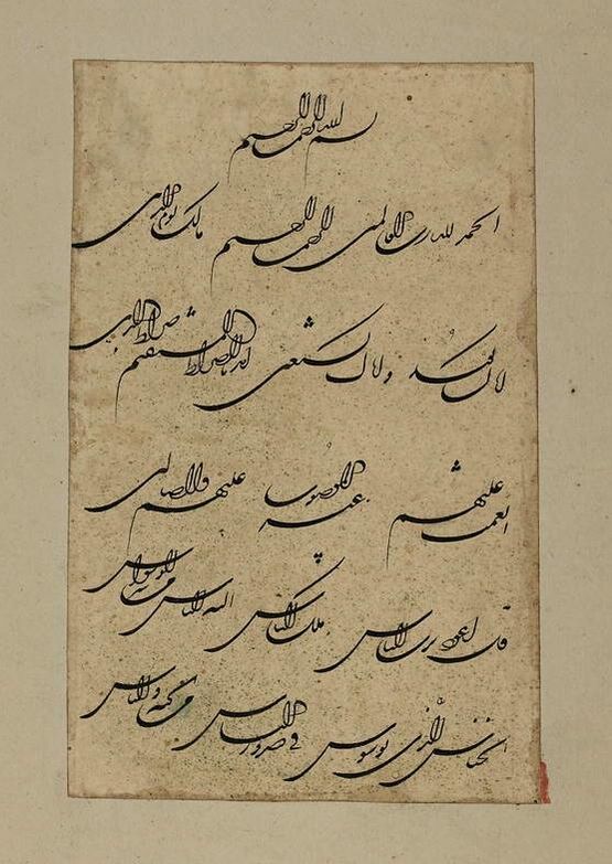 Все суры Корана, кроме девятой, начинаются словами: «Во имя Аллаха, Милостивого, Милосердного». В первой суре Корана эти слова включены в текст в качестве первого аята[1].