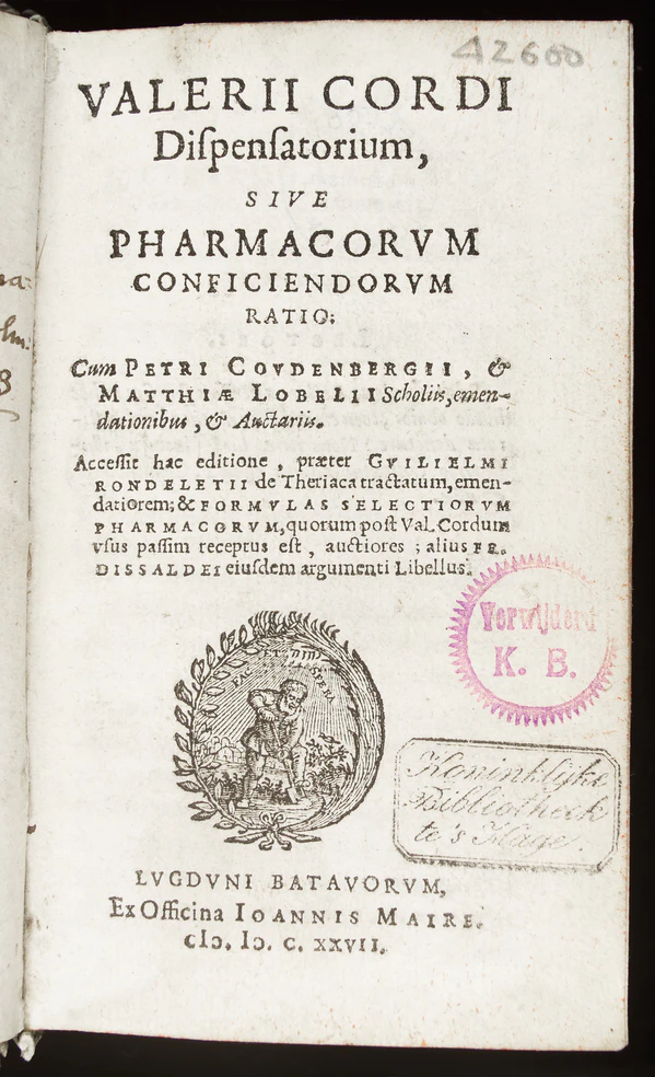 В 1542 году Корд представил городскому совету Нюрнберга свой основной труд по фармакологии (лат. Valerii Cordi Dispensatorium, sive Pharmacorum conficiendorum Ratio), за который получил сто золотых монет; этот труд был издан Нюрнбергским муниципалитетом в 1546 году и многократно переиздавался[3].