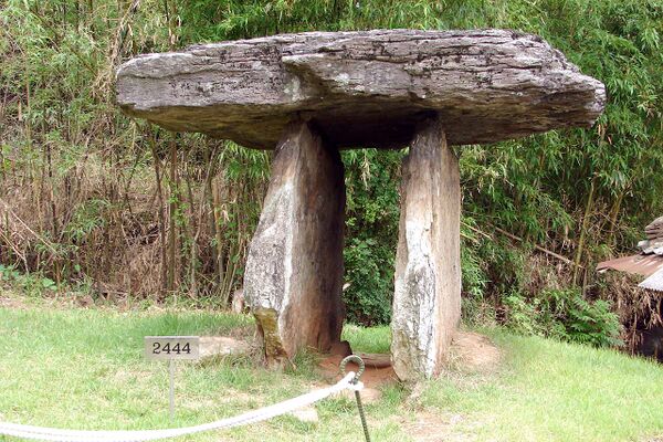 Дольмены использовались как погребальные сооружения для знатных людей керамической эпохи Мумун (1500—300 годы до н. э.). Они были обнаружены в большом количестве и, вместе с каменными гробницами, являются главными примерами погребальной архитектуры эпохи Мумун. Существует три типа мегалитов: 1) южный тип (низкие, зачастую это просто плита для поддержания камней), 2) северный тип (большие мегалиты, напоминают столбы), 3) верхний тип (облицовочный, без поддержки камней). Распространение дольменов могло бы подразумевать некое отношение к мегалитическим культурам по всему миру.