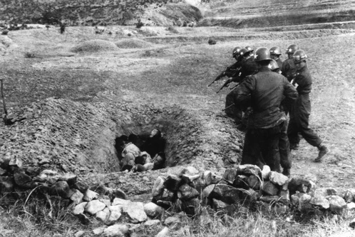 - Многочисленные показания свидетелей подтверждают, что и северокорейские, и южнокорейские войска часто прибегали к пыткам и казням военнопленных, убивали раненых солдат противника. Так, 17 августа 1950 года северокорейские солдаты расстреляли 41 пленного американского военнослужащего из 1-й кавалерийской дивизии[81]. 27 сентября 1950 года в Тэджоне северокорейцами были расстреляны около 60 пленных американских солдат[82]. Осенью 1950 года в Сунчхоне северокорейскими войсками были расстреляны более сотни американских военнопленных[83].