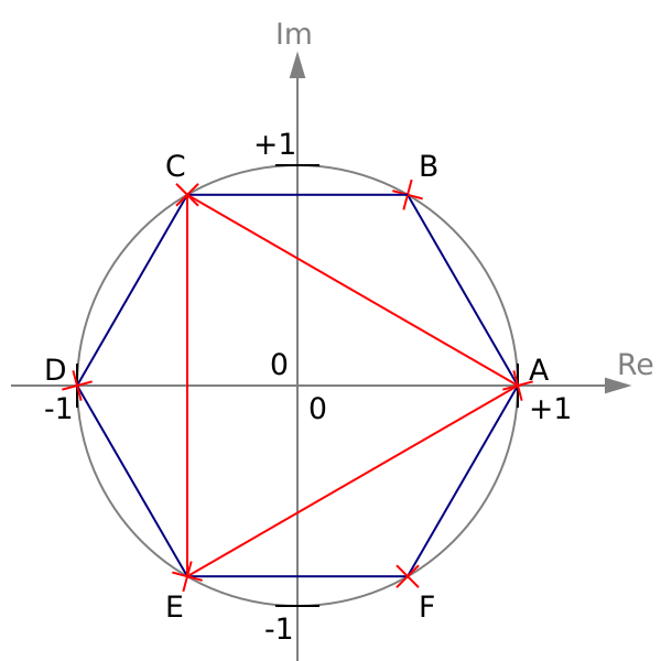 Комплексные корни произвольной степени в начале XIX века глубоко исследовал Гаусс, хотя первые результаты принадлежат Эйлеру[35]. Чрезвычайно важным открытием (Галуа) стало доказательство того факта, что не все алгебраические числа (корни многочленов) могут быть получены из натуральных с помощью четырёх действий арифметики и извлечения корня[36].
