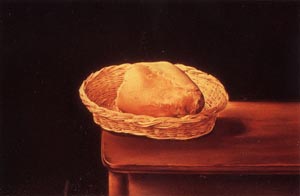 В 1941 году Дали заявил, что намерен «сделаться классическим», — эволюция, которую предвещало его изучение художников Итальянского Возрождения и которая, по всей видимости, отражала его ощущение, что собственная психическая биография как источник сюжетов уже исчерпана. Начиная с этого времени, Дали все чаще обращается за вдохновением ко внешнему миру. В отличие от других пионеров современного искусства, живопись Дали всегда была тщательно выполнена, и в 1940-х годах его стиль еще больше приблизился к академическому идеалу прошлого века, воспринимавшемуся как нечто вызывающе старомодное. Притяжение традиции, игравшее для художника все большую роль, видно и в этой прекрасно написанной, очень простой работе, где хлеб и корзина кажутся освещенными изнутри и как бы плывущими в темноте. Этот мотив привлек внимание художника, возможно, из-за сходства с картинами любимых им испанских мастеров, таких как Веласкес и Сурбаран. Он также предвещает увлечение Дали религиозными сюжетами, начавшееся в 1950-х годах[2].