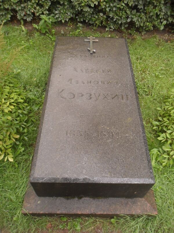 Алексей Корзухин был похоронен на Никольском кладбище Александро-Невской лавры. В 1940 году его прах был перезахоронен на Тихвинском кладбище той же лавры с установкой нового памятника.
