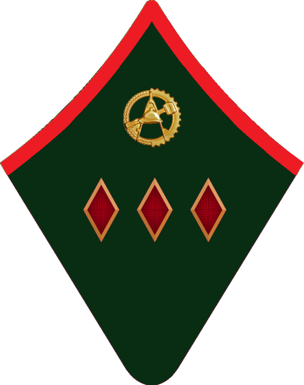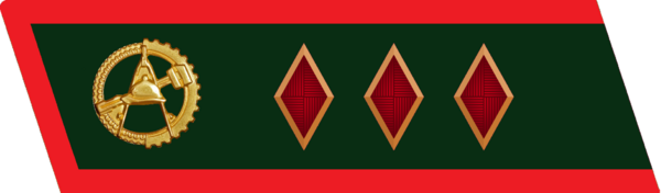 Знаки различия — три красных ромба в петлицах.