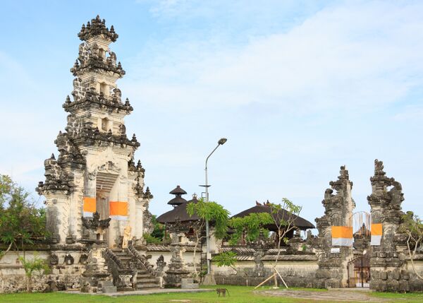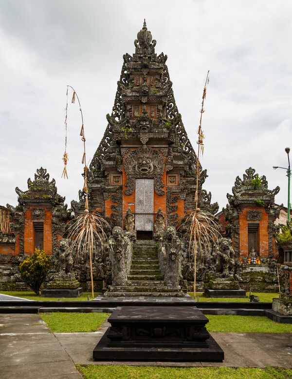 В балийской храмовой архитектуре главный храм обычно имеет тройные ворота кори-агунг, самый большой и высокий кори-агунг между двумя меньшими. Ежедневно посвящённые и случайные посетители используют боковые двери, в то время как главная дверь заперта, за исключением религиозных праздников.[2] На Бали центральные ворота кори-агунг предназначены для священников и богов.