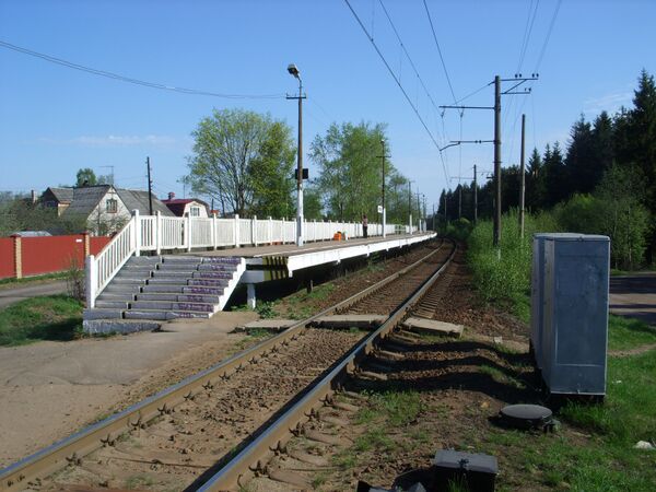 На подходе к платформе со стороны Мельничного Ручья, за 500 метров до переезда, от главного пути на север отходит подъездной путь.