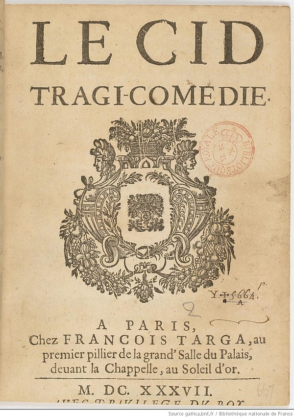 В конце 1636 года появилась другая трагедия Корнеля, составляющая эпоху в истории французского театра: это был «Сид», сразу признанный шедевром; создалась даже поговорка: «прекрасен как Сид» (beau comme le Cid). Париж, а за ним вся Франция продолжали «смотреть на Сида глазами Химены» даже после того, как парижская академия осудила эту трагедию в Sentiments de l’Académie sur le Cid: автор этой критики Шаплен находил выбор сюжета трагедии неудачным, развязку — неудовлетворительной, стиль — лишённым достоинства.