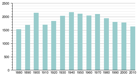 Из 725 домашних хозяйств 58,9 % представляли собой семьи: 47,0 % совместно проживающих супружеских пар (15,7 % с детьми младше 18 лет); 7,7 % — женщины, проживающие без мужей и 4,1 % — мужчины, проживающие без жён. 41,1 % не имели семьи. В среднем домашнее хозяйство ведут 2,17 человека, а средний размер семьи — 2,80 человека. В одиночестве проживали 36,0 % населения, 19,3 % составляли одинокие пожилые люди (старше 65 лет)[1].
