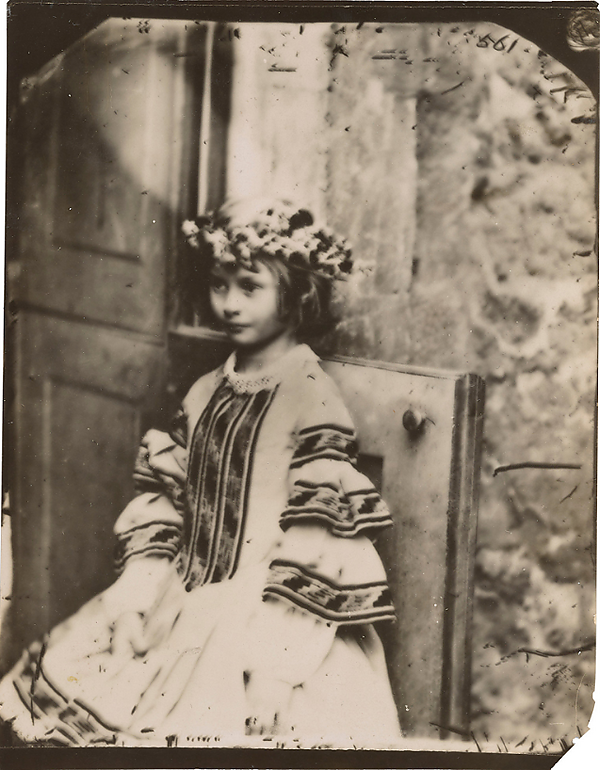 Фотография входит в коллекцию Библиотеки Принстонского университета, инвентарный номер — Z-PH-LCA-III.5. Она фигурирует там под названием «Алиса Лидделл, дочь декана [колледжа] Кр[айст]-Ч[ёрч]» (англ. «Alice Liddell, daughter of the Dean of Ch. Ch.»). Фотография входила в Альбом III Льюиса Кэрролла (находилась на странице 5). Размер — 8 1/2 x 11 сантиметров. Техника — мокрый коллодионный процесс на альбуминовой фотобумаге[1]. Ещё один экземпляр фотографии находится в Библиотеке и музее Моргана (он является зеркальным отражением позитива из Принстонской библиотеки)[2]. Он стал частью коллекции в качестве дара от Артура A. Хоутона[3].