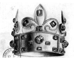 Настоящая корона Карла Великого (на иллюстрации) не сохранилась, вместе с остальными королевскими коронами она была переплавлена на драгоценные металлы после революции.