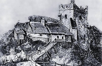 Легенда, связанная с замком, касается источника, находившегося у подножия Кузнечной башни. Вода из него никогда не замерзала и имела серный привкус. Недалеко от него замок охраняли молодые и смелые рыцари. Время от времени, однако, один из них бесследно исчезал. Наконец, появился смельчак, который, вооружившись алебардой, святым мелом и розарием, остался возле источника. Он нарисовал мелом вокруг себя круг и стал ждать, что произойдет. После полуночи он услышал прекрасные песни, музыку и увидел нимф, вынырнувших из источника и приглашающих его к танцу. Понимая, что это они являются причиной исчезновения рыцарей, он, не выходя из начертанного круга, бросил розарий к источнику. Вода зашипела, а нимфы превратились в отвратительных ведьм и улетели в ночь.