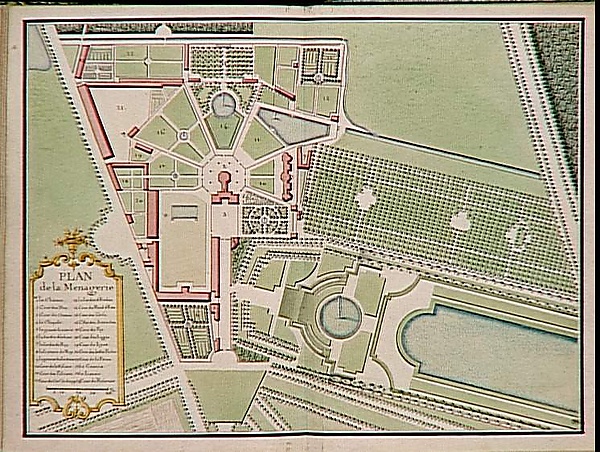 В плане общей планировки зданий зверинца и дворов для животных Луи Лево, очевидно, вдохновлялся вольером римского патриция Варрона в Казинуме, с которым он наверняка был знаком по гравюре Пирро Лигорио. Отсюда происходит идея замка, ведущего к павильону, ограждения которого повторяют его геометрическую форму. В центре зверинца располагался восьмиугольный двухэтажный павильон, увенчанный высоким куполом, покрытым сланцем. Первый этаж был опоясан по периметру балконом, с которого открывался вид на окрестности. Павильон был окружён внутренним двором многоугольной формы, к каждой внешней стороне которого прилегали многочисленные дворы, разделённые, словно расходящимися веером лучами, стенами, формирующими загоны.