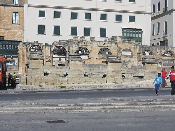 7 апреля 1942 года, вечером вторника, силы люфтваффе совершили авианалёт на Валетту: бомбы угодили прямо в здание Королевского оперного театра и разрушили его до основания. Были уничтожены портик и зрительный зал; уцелела только часть заднего крыла недалеко от колоннады[9]. В 1950-е годы часть руин была уничтожена в целях безопасности. Ходили слухи, что в 1946 году предлагалось силами немецких военнопленных восстановить театр, однако правительство на это не пошло. О театре напоминали только остатки террасы и колонны.