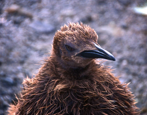 Птенцов королевский пингвин кормит, отрыгивая частично переваренную рыбу прямо в рот птенцу.