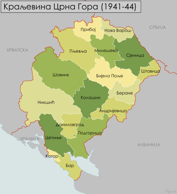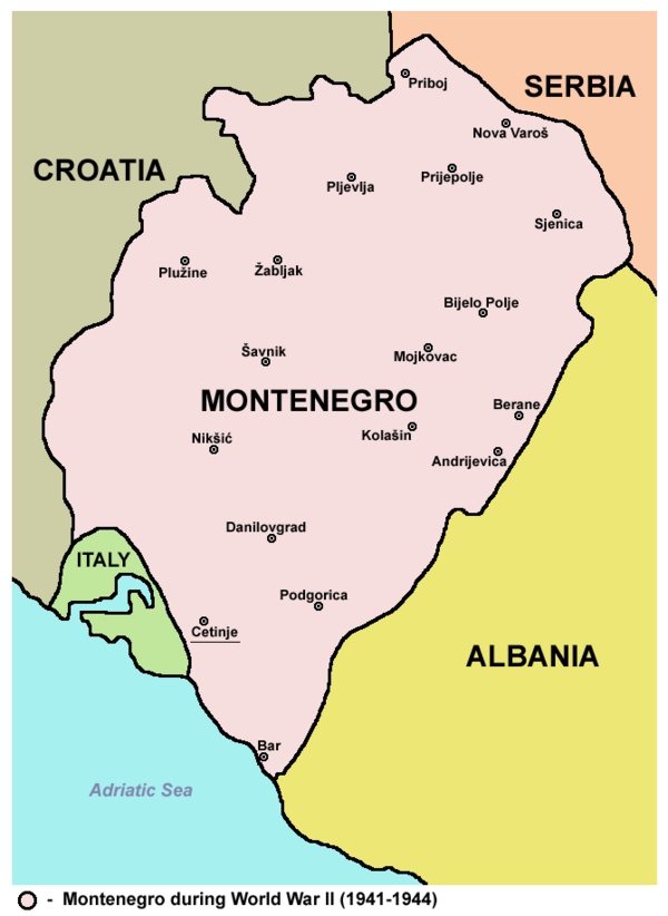 Королевство Черногория (итал. Regno del Montenegro, черног. Краљевина Црна Гора) с 1941 по 1943 год существовало как протекторат Италии и фактически не являлось государством. Черногория была частью ирредентической идеи — Большой Италии. Режим Муссолини видел Черногорию как часть будущей империи, которая также будет включать в себя всё адриатическое побережье и части Греции, вернув тем самым земли, ранее принадлежавшие Венеции. Местное население должно было ассимилироваться, став частью итальянской нации. Планировалось начать заселение Черногории итальянцами (по примеру Албании), для последующего вытеснения местного населения.