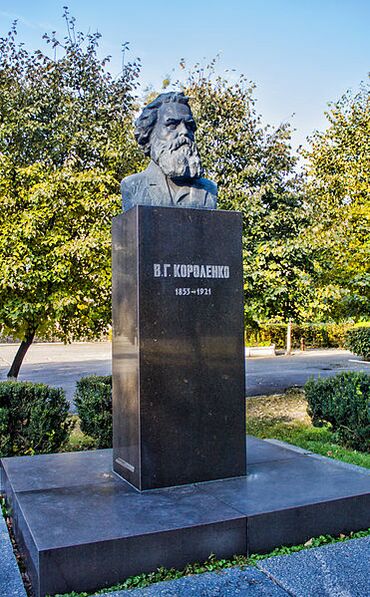 Влади́мир Галактио́нович Короле́нко (15 [27] июля 1853[3], Житомир[3] — 25 декабря 1921[1][2][…], Полтава) — русский писатель, журналист, прозаик и редактор, общественный деятель. Известный публицист, заслуживший признание своей правозащитной деятельностью как в годы царской власти, так и в период Гражданской войны и советской власти. Короленко был связан с революционным движением, за что неоднократно подвергался арестам и ссылкам. Значительная часть литературных произведений писателя навеяна впечатлениями о проведённом в Житомире детстве и ссылкой в Сибирь.