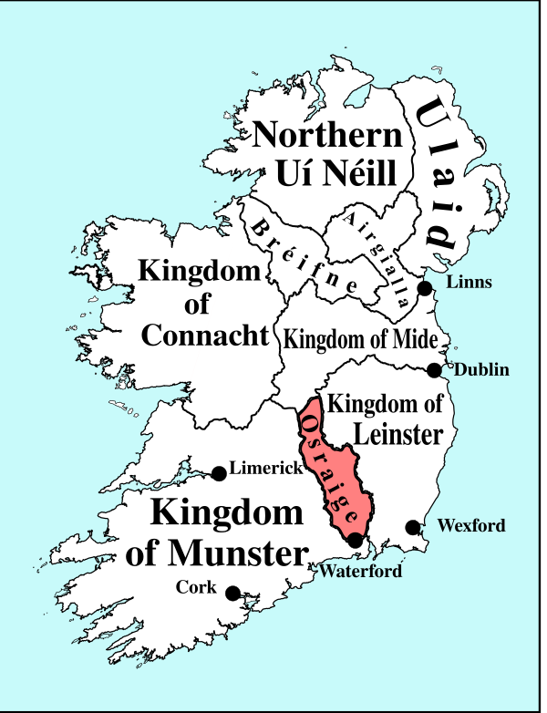 Королевство Осрайге находилось на территории современных графств Килкенни и Лиишь. Королевство было завоевано Англией и прекратило своё существование в 1172 году.
