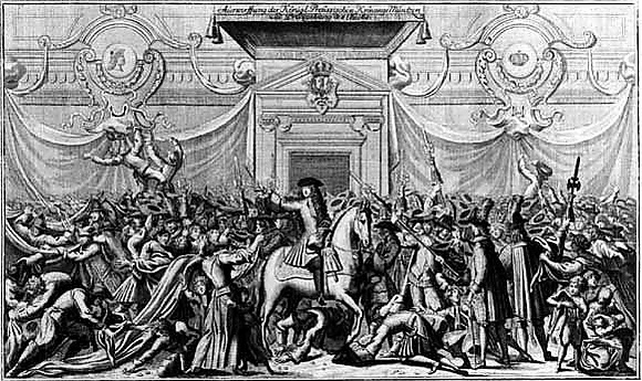 Его больше заботил ослепительный блеск, чем польза, которая просто прочна. Он принес в жертву 30 000 подданных в различных войнах императора и союзников, чтобы получить королевскую корону. И он желал ее так страстно только потому, что хотел удовлетворить свою любовь к церемониям и оправдать свою экстравагантную пышность видимостью разума. Он проявлял суверенное великолепие и щедрость. Но какой ценой он купил удовольствие от удовлетворения своих тайных желаний?[29]
