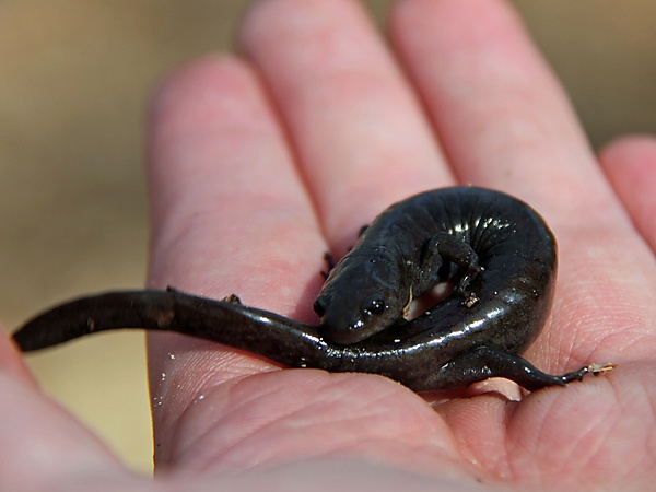 Общая длина достигает 11-17,8 см. Голова короткая, широкая. Глаза выпуклые. Тело массивное и коренастое, конечности сильные с длинными пальцами. Хвост довольно длинный, постепенно уплощающийся и сужающийся к концу. Окраска спины серо-чёрная или чёрная. Бока и брюхо сероватого цвета, иногда с синеватым оттенком. По основному фону разбросаны тёмные пятна[3].