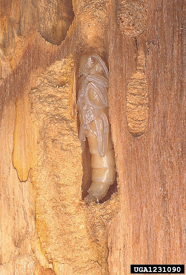 Личинки развиваются внутри древесины, где прокладывают продольные ходы, забивая их мелкой буровой мукой. Ходы прокладываются как во внешнем так и в глубоких слоях древесины. Личинки старшего возраста, готовящиеся к окукливанию, проделывают поперечный ход к поверхности ствола, забивают ход буровой мукой и приступают к устройству куколочной колыбельки, которая длиной 35-40 мм и шириной от 8 до 14 мм. Личинка в колыбельке поворачивается вниз головой и приступает к окукливанию[6].