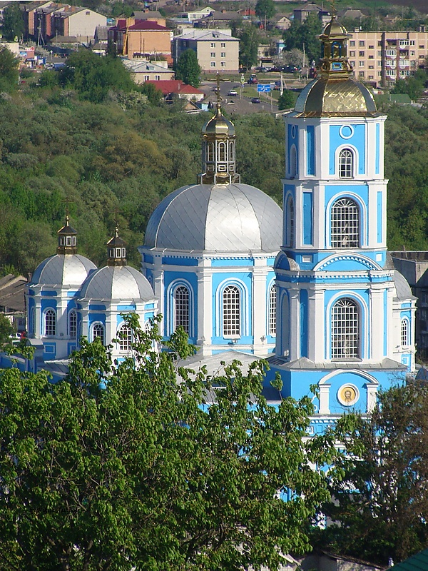 В 1873 году начинается строительство храма Рождества Пресвятой Богородицы. Он возводился на месте, где прежде располагались два предшествующих ему храма (деревянный имени Архистратига Михаила, по преданию сгоревший после удара молнии, и каменный в честь Рождества Богородицы, построенный по указу Петра I после победы в Полтавской битве). К 1883 году был построен пятипрестольный храм; приделы освящены в честь Покрова Пресвятой Богородицы, Преображения Господня, во имя Святителя Николая, Архистратига Михаила, центральный престол Рождества Пресвятой Богородицы.