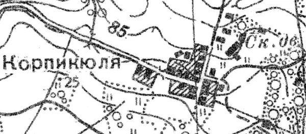 Деревня Корпикюля (хутор Коркюля) упомянута на карте 1885 года.