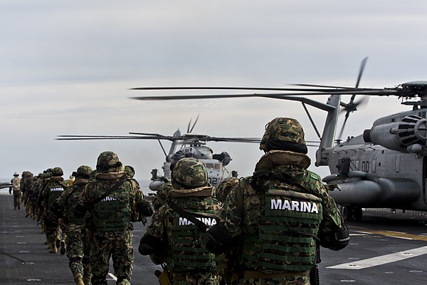 С начала войны президента Фелипе Кальдерона с наркокартелями роль военно-морских сил выросла с безопасности на море и в порту до операций на суше в борьбе с организованной преступностью, наркоторговлей, уничтожением полей марихуаны, перехватом наркотиков на море, а также участием в аресте подозреваемых в картелях.[5]