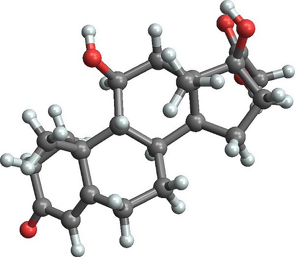 В 1930-х годах американские и европейские исследователи независимо друг от друга изучали активные вещества, секретируемые железами надпочечников. Содержание этих веществ в органах крайне низко. Таким образом, при существующих в то время методах анализа непосредственное структурное выяснение было невозможно. Поэтому Эдварду Кэлвину Кендаллу и его коллегам пришлось извлечь железы из 1,25 миллиона голов крупного рогатого скота на бойнях[2]. Из экстракта они выделили, в частности, восемь стероидов, которые первоначально назывались «Соединения А-Н». Затем Кендалл дал своему «Соединению Е» название кортизон; «Соединение F» позже было названо кортизолом. Тадеус Райхштейн смог выяснить химическую структуру и конфигурацию вещества[3][4][5]. Хиральное вещество формально может быть получено из стероидного углеводорода прегнана, что дает нумерацию атомов углерода. Он содержит три гидроксильные группы и две кетогруппы, одна из которых α, β-ненасыщенная (конъюгированная), еноновая структура. Гидроксильные группы классифицируются как первичные, вторичные и третичные, что отражается в реакционной способности.