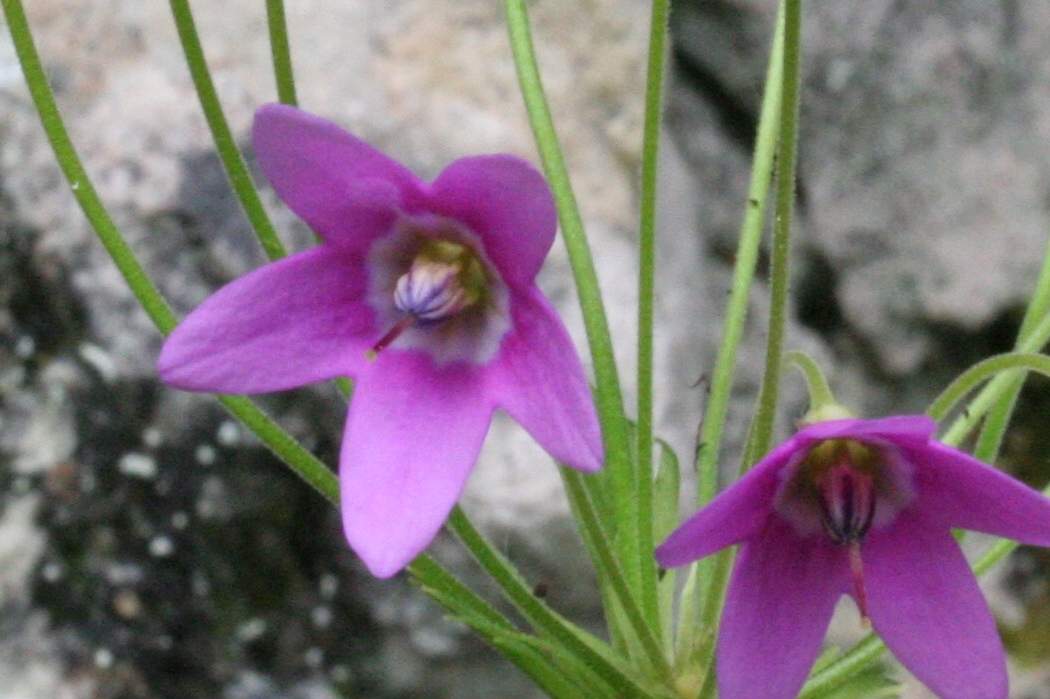 Цветки обоеполые, актиноморфные, чашечка и венчик разделены на пять частей. Цветки протерогинные, рыльце выступает из нераскрывшегося цветка. Цветок со спайнолепестным розовым (в начале цветения) и пурпурно-фиолетовым (редко белым) воронковидным или колокольчатым венчиком от 7 до 12 мм в диаметре, с малозаметной короткой трубкой, отгиб с острыми лопастями. Венчик рассечён до 1⁄3[13]:193. Доли венчика цельные. Тычинок пять; пыльники длиннозаострённые. Тычинки выдаются из венчика[17]:343. Нити тычинок внизу расширенные и сросшиеся, образуют трубку или кольцо. Колокольчатая чашечка 4—6 мм длиной с острыми зубцами (которые достигают выемки венчика), надрезанная примерно наполовину. В основании между зубцами — небольшие плёнчатые участки.