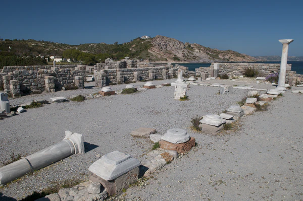 Асклепион[15]. Находится в 4 километрах к юго-западу от Коса, на холме. Представляет собой асклепион, храм бога-целителя — Асклепия. Храм был построен на трёх уровнях. На первом уровне располагалась школа медицины и музей анатомии. На втором находились ванны с термальной водой, на третьем уровне стоял храм. В настоящее время на развалинах Асклепиона в музее под открытым небом осуществляются театрализованные постановки, связанные, например, с принесением клятвы Гиппократа.