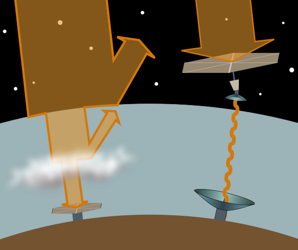 - Поддержание постоянного положения станции над приёмником энергии: давление солнечного света будет отталкивать станцию от нужного положения, а давление электромагнитного излучения, направленного на Землю, будет толкать станцию от Земли.